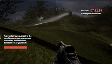 In the terrain I made with landscape tool, foliage, and costimzed materials, I programmed a series of watch towers with volumetric lighting to serve as obstacles for the player.