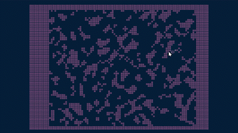 Using a combination of techniques, the Binary Tree Split to first allocate and form the general structure, then Cellular Automata to populate each space into caves.